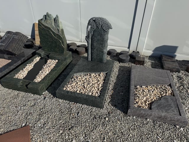 Diese handwerklich besonders schön gearbeitete Urnengrabanlage besticht durch Ihre organische Formgebung und das detailverliebte Baumornament. Die gelederte Oberfläche des Granits im Material „Olive Green“ unterstützt zusätzlich die natürliche Optik der Anlage. Die Einlegeplatte bietet Platz für eine Laterne oder Vase.